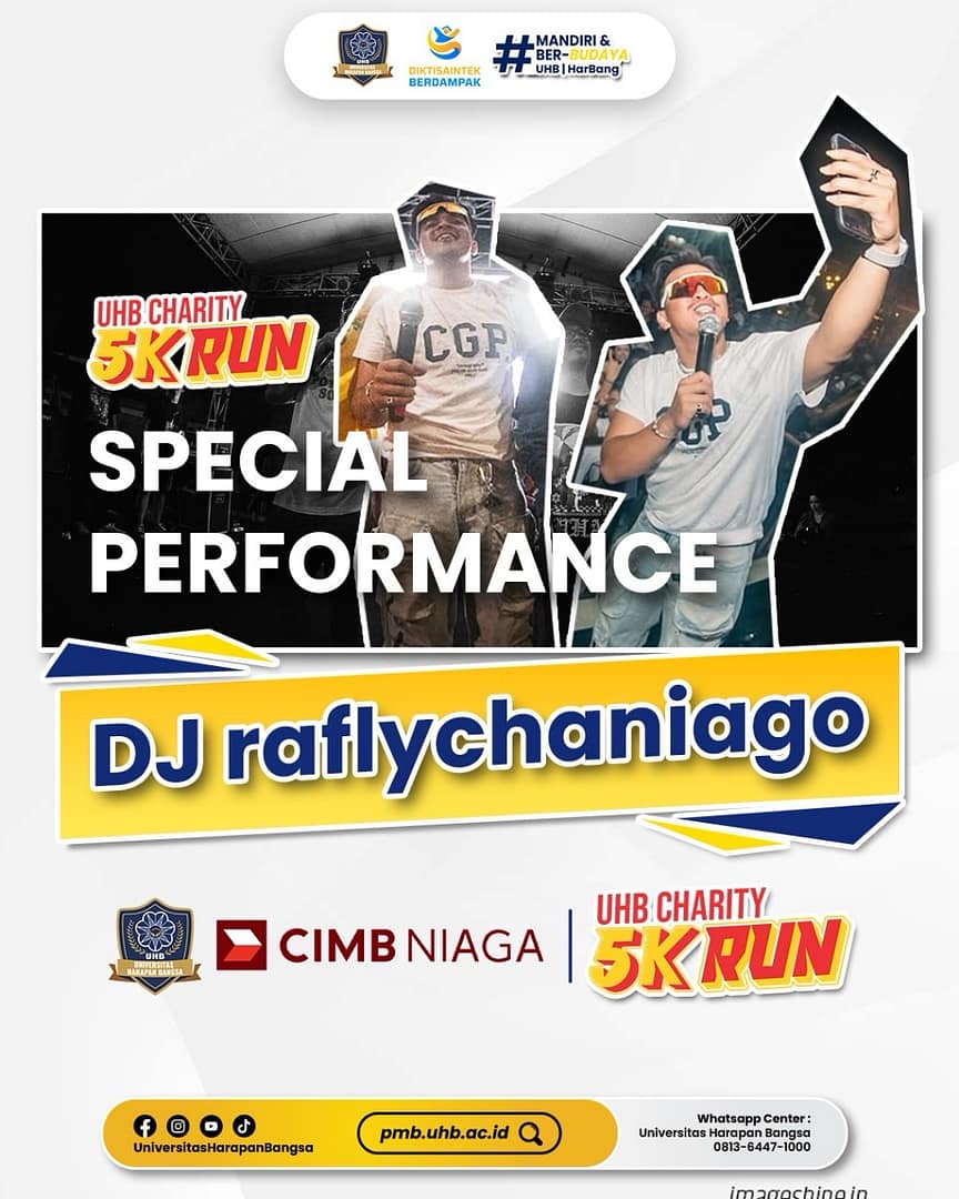 Rasakan suasana semangat dan energik dalam UHB Charity 5K Run – Lari Sehat, Berbagi Manfaat! dari penampilan spesial DJ RAPLI yang akan memeriahkan panggung UHB Charity 5K Run!